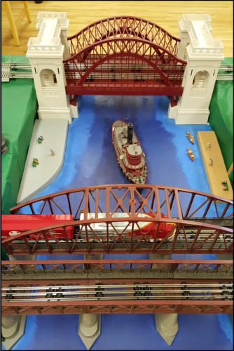 A big hit for the day was the custom O scale layout made by Stuart and Michael.